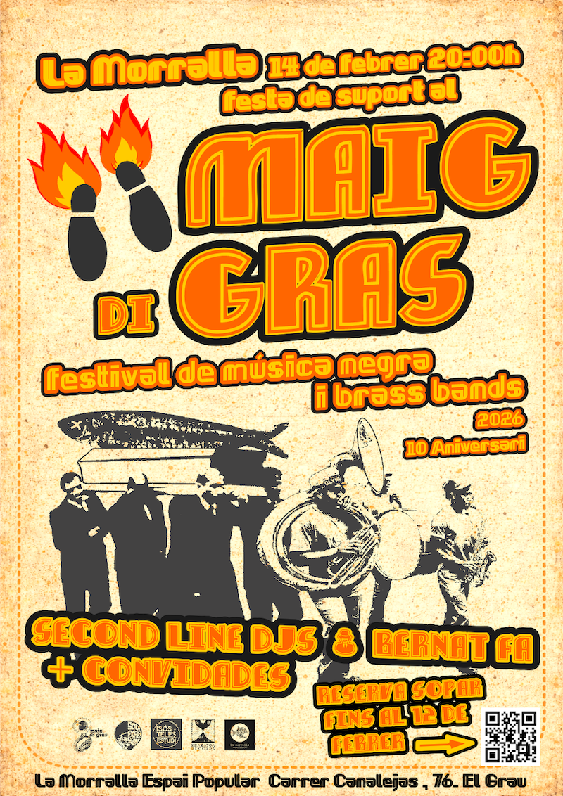 La Morralla 14 de febrer a les 20:00 Festa de suport al Magi di Gras Second line Djs + Bernat Fa + Convidades Reserva el Llegir més »